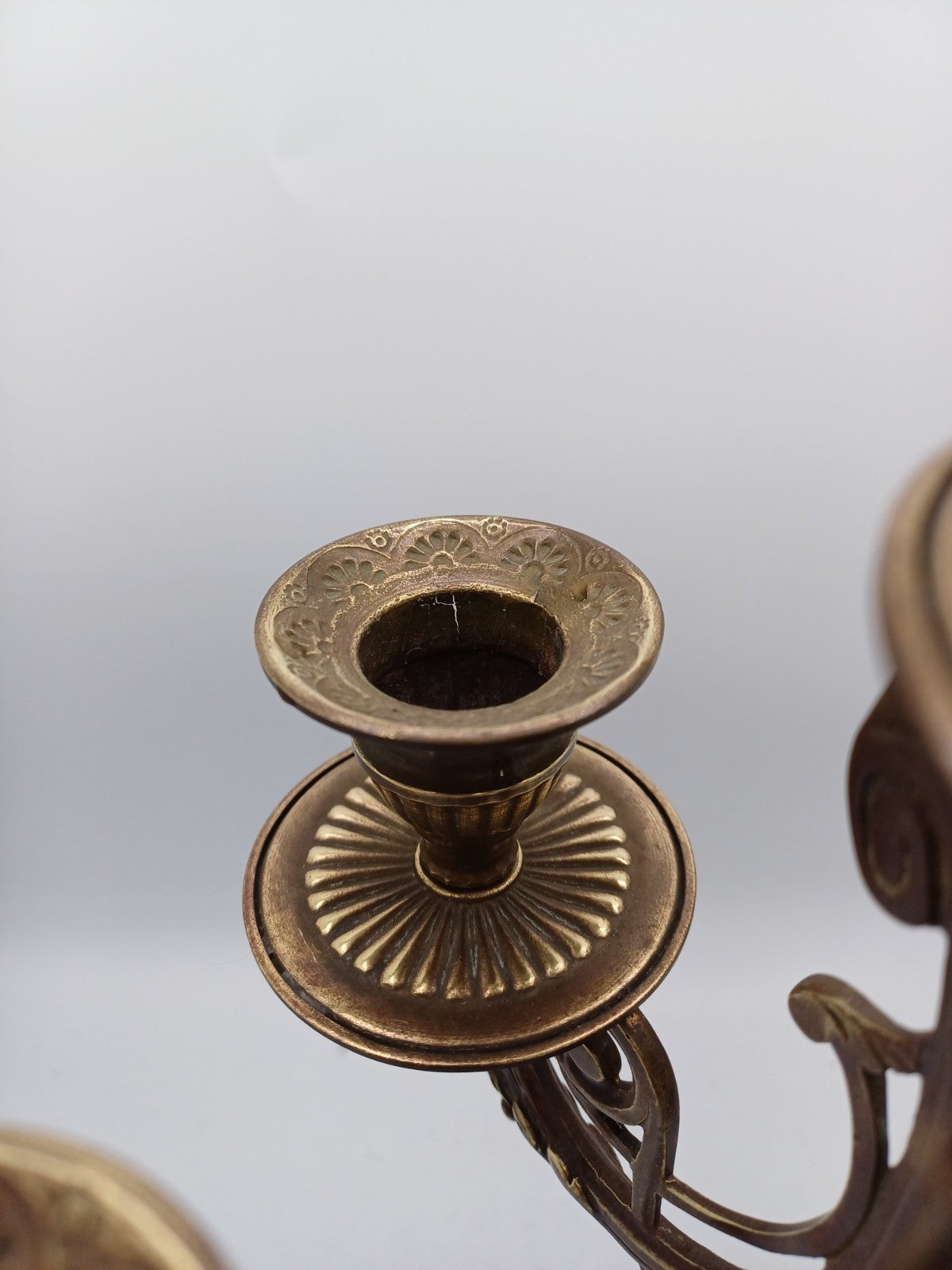 Élégant chandelier en bronze doré à 5 branches, au style classique et raffiné. Ce superbe objet décoratif, travaillé avec finesse, apportera une touche d’élégance à votre intérieur, que ce soit sur une table, une cheminée ou un buffet.