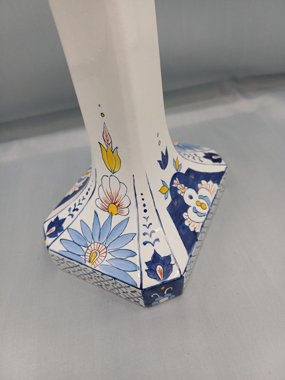 Un bougeoir décoratif plein de charme, idéal pour les amateurs de faïence ancienne, de pièces d’inspiration Delft ou pour enrichir une décoration classique.